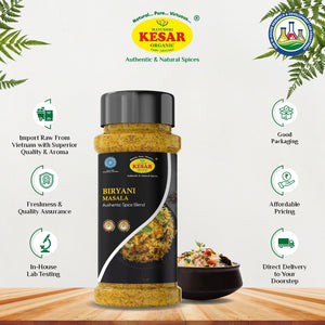 This masala is crafted with a complex mix of whole spices including mace, star anise, and cardamom, and sourced primarily from Vietnam for a truly authentic, richly aromatic biryani.