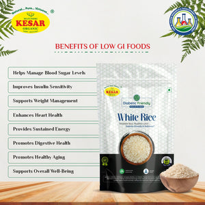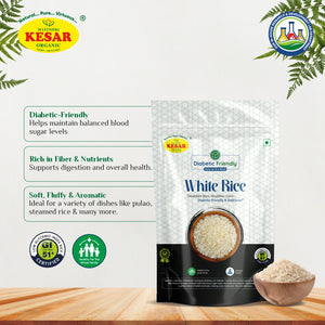 Matushri Kesar Diabetic-Friendly Rice is a specially selected variety of premium Sona Masoori White Rice—naturally light, aromatic, and easy to digest. With a Glycemic Index (GI) of less than 51*, it’s an ideal staple for individuals managing their blood sugar levels, as well as those looking for a healthier everyday alternative to traditional white rice.